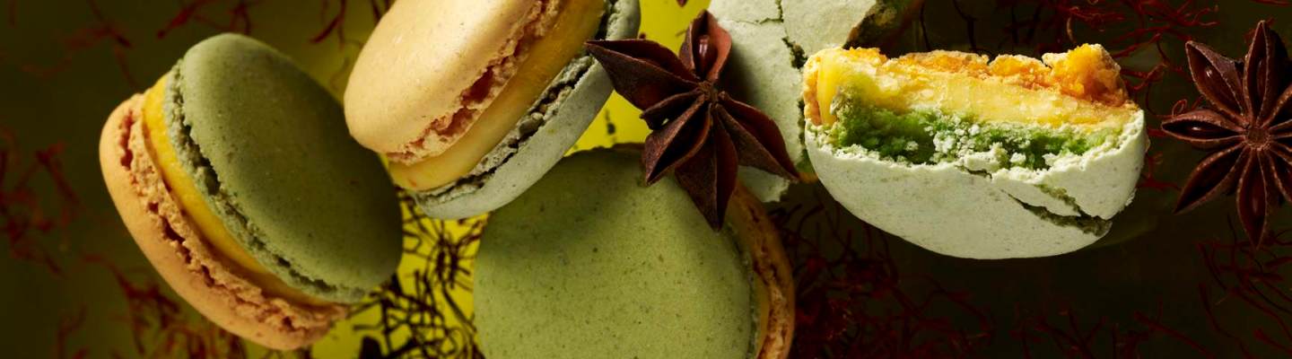 Légende des images : Macarons « Les Jardins », Pierre Hermé, été et automne 2014.
